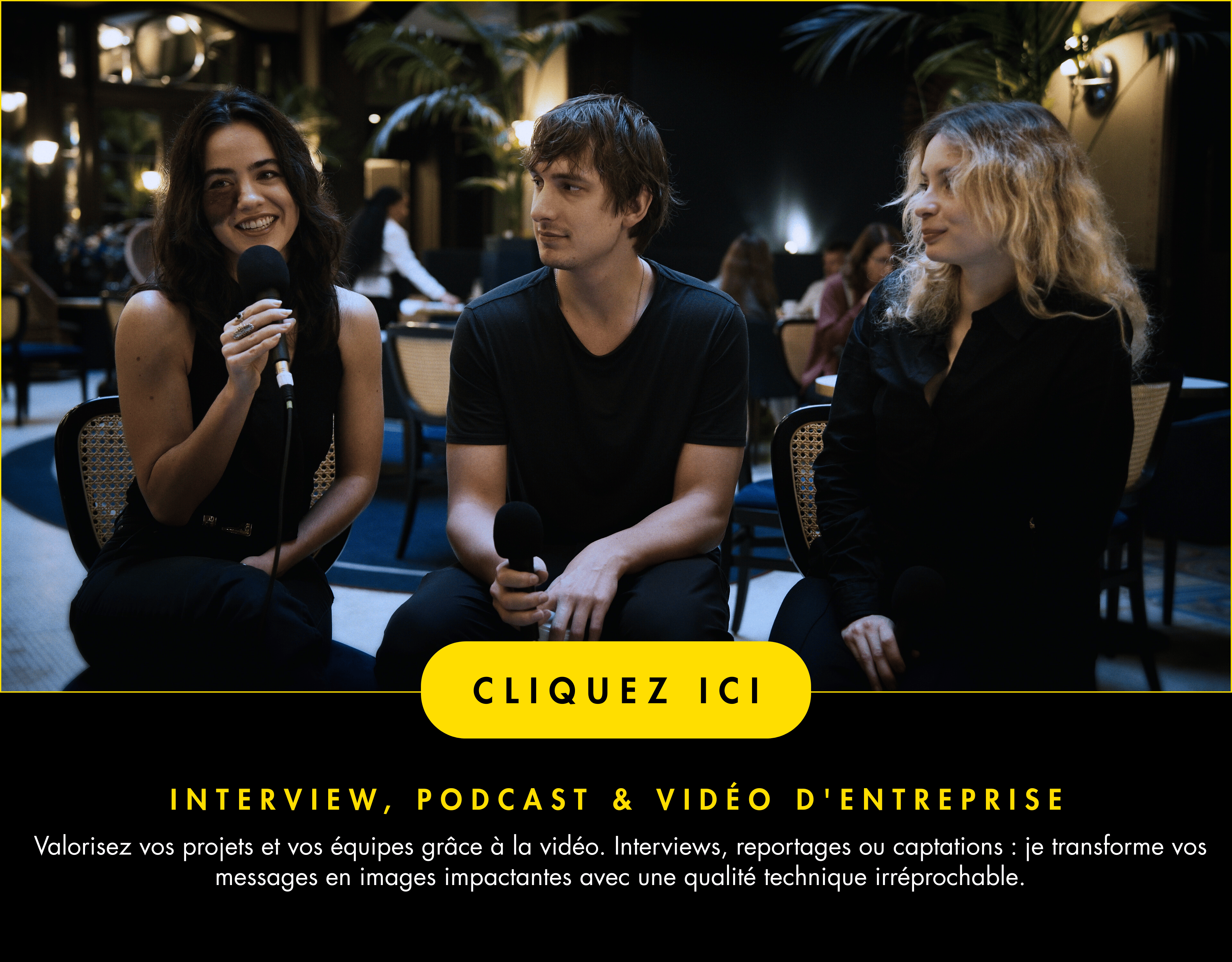 Que ce soit pour une interview, une captation ou un film de marque, contactez-moi dès aujourd’hui via le formulaire pour recevoir un devis personnalisé. Je m’engage à étudier votre demande et à vous répondre sous 24 heures.